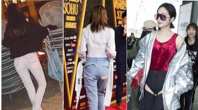 破洞牛仔裤一直都是达人们的最爱,越破越时髦,看这都破到臀部了,真是让人看了羞羞哒~
