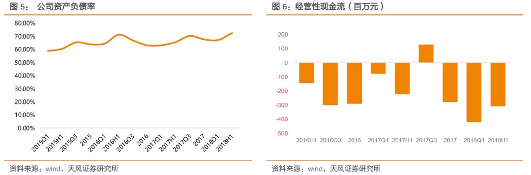 公司收现比为0.8498,同比增加了2.08个百分点;同期公司付现比为0.8812,同比下降8.42个百分点。同期经营活动产生现金流净额为-3.1亿,较前值扩大0.86亿。公司上半年资产负债率为72.68%,较去年同期增加6.86个百分点,系业务高速增长,对资金需求量加大所致。参考公司之前做法,预计下半年可能发行应收账款ABS,将在一定程度上缓解公司资金压力、降低负债率。