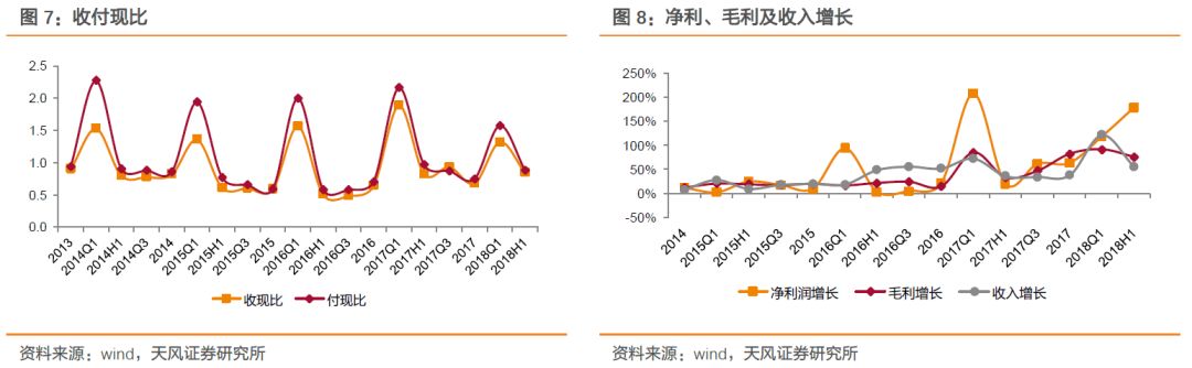2018上半年公司完成营业收入26.84亿元,同比增加56.80%,主要是因为前期合同储备逐步转化,装饰项目开工量增加所致。公司实施大客户战略,与恒大、复地、绿地、绿城等大型房企建立了稳定良好的合作伙伴关系,上半年前五名客户的应收账款占比为51.40%,去年同期为57.36%,稍有下滑。在公司下游地产行业集中度逐步提升的背景下,公司未来将能保持较好的成长性。