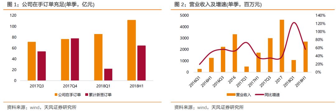 2018上半年公司新签合同额64.25亿元,同比增长27.71%,其中定制精装业务新签合同额为16.62亿元,而2017年全年新签定制精装订单额仅为12.43亿,定制精装业务订单量增长迅速;在手订单111.34亿元,是公司2017年营业收入的2.41倍,在手项目储备充足。其中施工业务订单达73.93亿,占比66.40%,定制精装修业务订单28.66亿元,占比达25.74%。预计下半年进入订单转化期,充足的在手订单与高增长的新签合同为公司未来业绩增长提供保障。