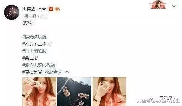 当然过生日这件事情,本人肯定也是会发一条微博的,而田馥甄的配文竟然侧面回复了真爱真爱,难道是在侧面公布恋情吗?随着他的好友都进入了婚姻的殿堂,而田馥甄现在仍是单身,让他的很多粉丝们都表示着急了,而田馥甄也正面回复了自己的恋情,想必应该是找到自己的真命天子了,只是男主角到现在都没有露面,如果真的是林俊杰的话,我想他应该会第一时间出来承认的吧。