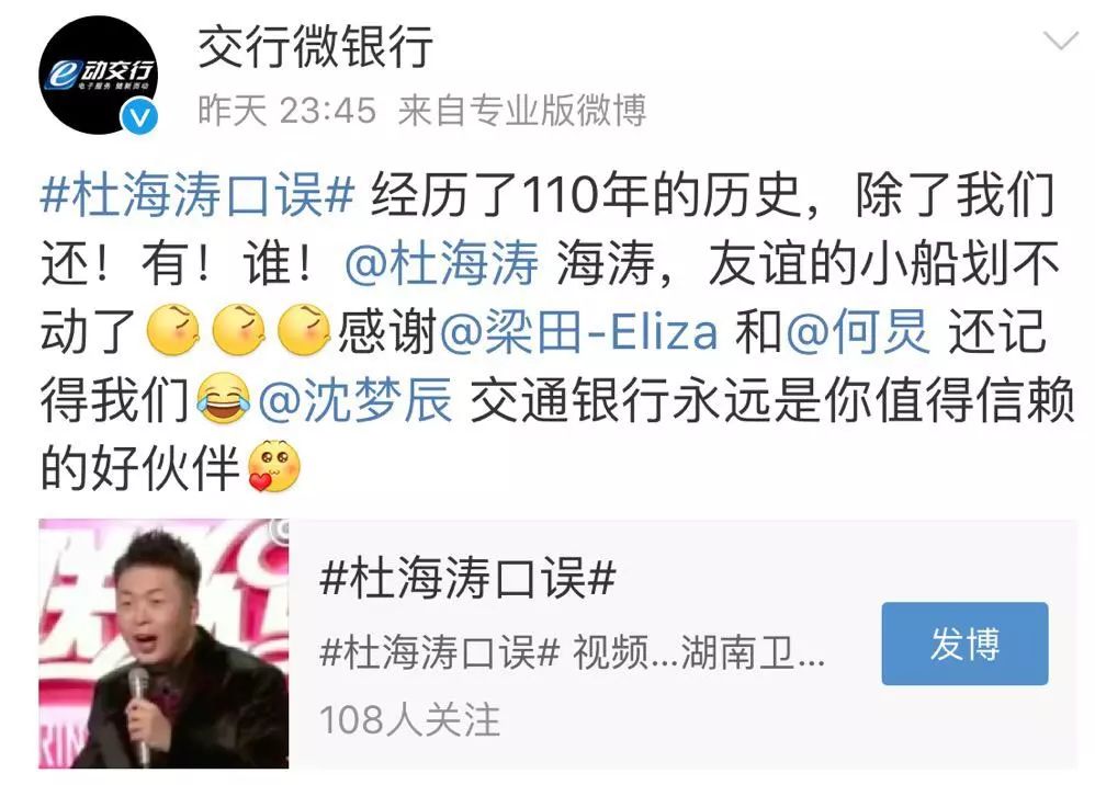杜海涛的口误让赞助商交行忍不住微博呼唤