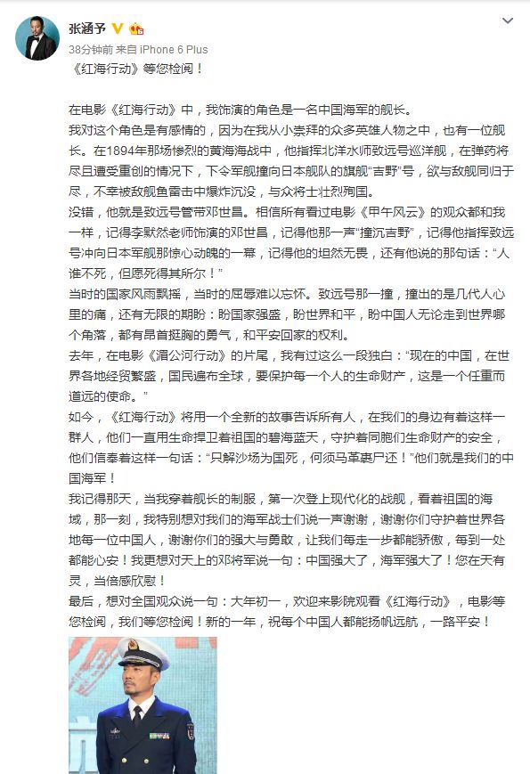 张涵予在信中写道:“感谢每一位海军战士,谢谢你们守护着世界各地的每一位中国人,谢谢你们的强大与勇敢,让我们每走一步都能骄傲,每到一处都能心安!”