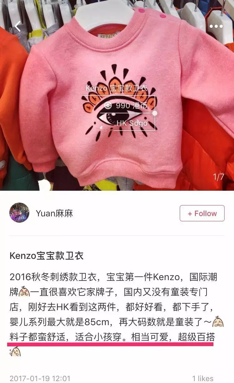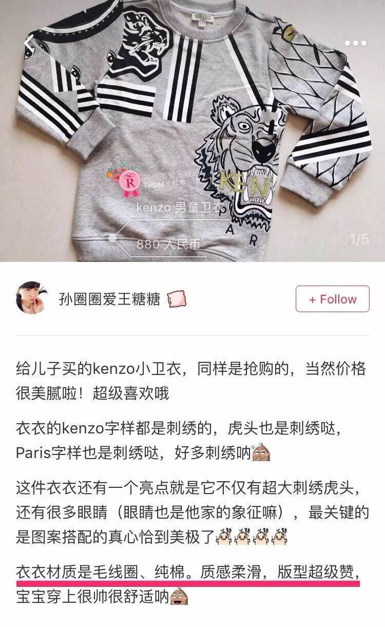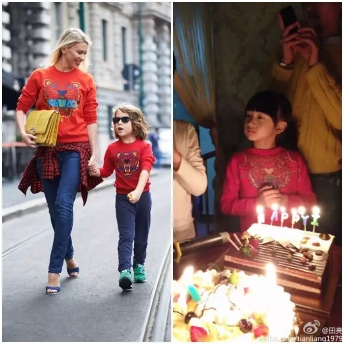 照片里田亮的女儿Cindy穿的就是KENZO的红色连衣裙