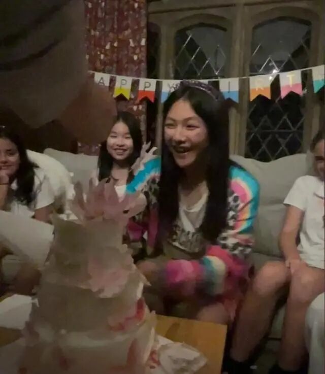 在她的生日派对上,与国际友人的合影,让人真切感受到李湘当初期望她拥有全球视野的愿望。