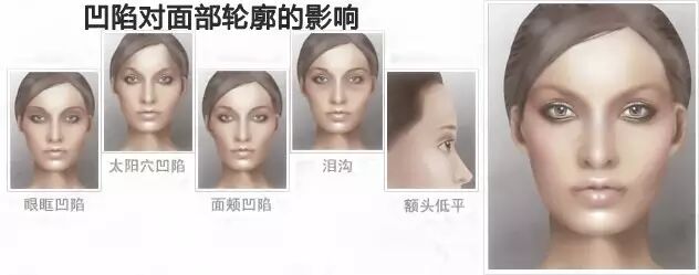 随着年龄增加或者过于消瘦、新陈代谢缓慢,胶原蛋白流失,造成脸部假性老态提早出现。原本丰盈饱满的面部会逐渐下垂,脂肪集中到了面中下部,面中上部于是出现了明显凹陷。面部凹陷最突出表现在眼睑,颞部、面颊部及额部4个部位。