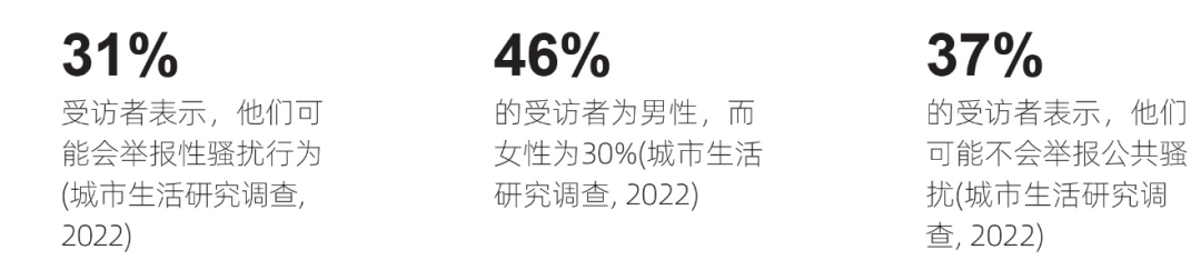 向性骚扰、虐待或攻击指责的受害者提供的不 完善服务进一步妨碍了女性安全感。对警察和其他安全服务人员的关注持续升温。例如,2022年英国一名警察人员被免职,因为他执勤时向一名性骚扰受害者示好。类似的事件经常增加民众对这些社会服务的不信任度,从而造成严重后果。美国巴的尔摩的一项研究发现,警察部门的不正当行为、具有歧视性的失职行为以及权利悬殊都是阻碍女性举报亲密关系暴力和性暴力的因素59。