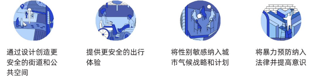 为城市决策者和从业人员制定切实可行的策略,从而设计、规划和运营适合女性的城市,重点关注空间干预,并考虑治理和行为改变。