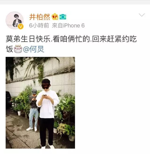 自然,少不了井柏然这个与何老师用“莫逆之交”来互称对方的人啦!!井柏然也是超级有心,零点刚过就送上暖心祝福呢~真羡慕这样子的情意!