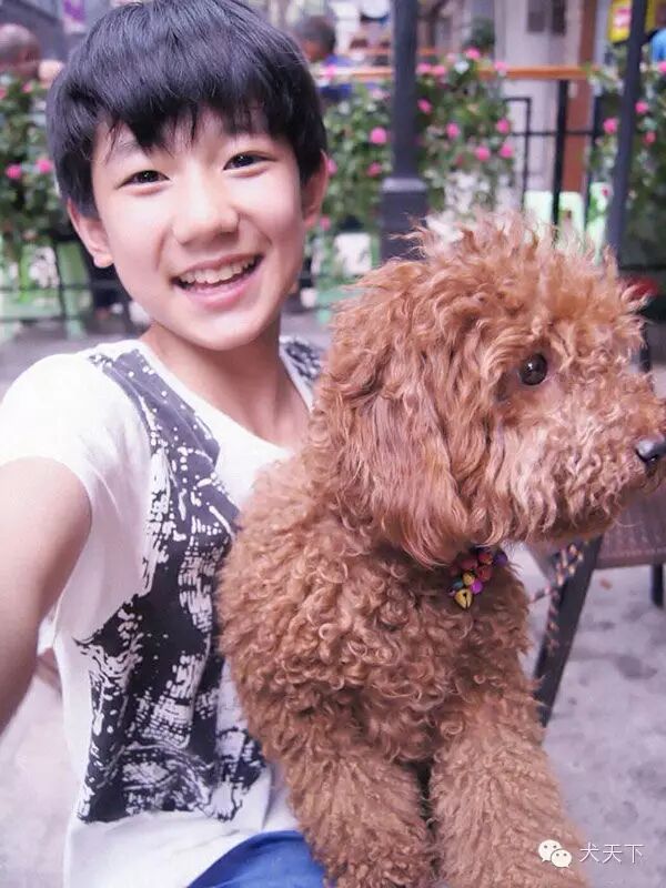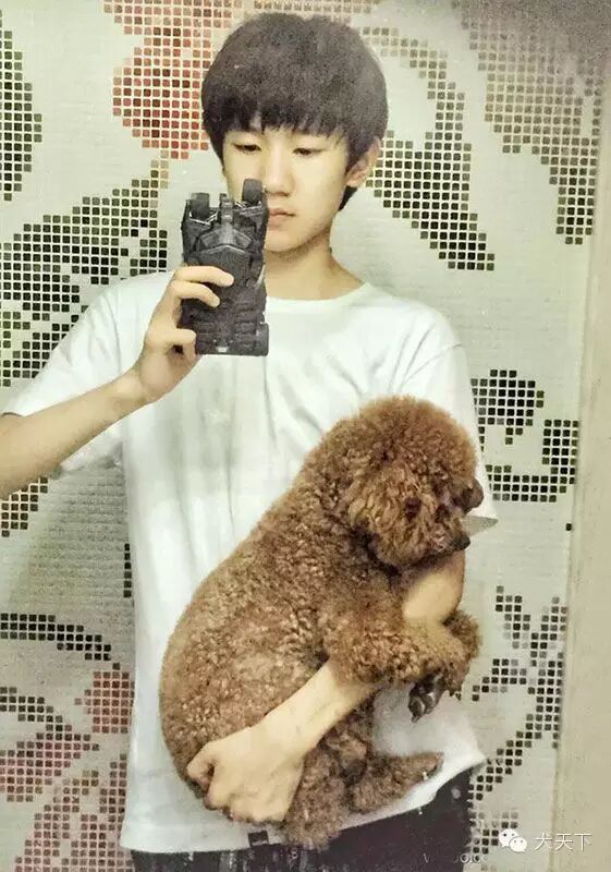 那时的嘟嘟挺可爱的但是看起来有点瘦,一段时间,王源都没胖起来,嘟嘟就胖成泰迪熊了…..嘟嘟也还是个任性的小公举,王源也很喜欢抱着它拍合照,戏说嘟嘟是“一只不让我做作业的米老鼠”,不过,那时的嘟嘟也才几个月大,高冷的嘟嘟对拍照这种事是不屑一顾的。