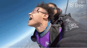 在广阔天空自在翱翔的是我们“歌神”陈奕迅,这自我放飞的表情和发际线。(感觉Eason背后的教练不是很开心,因为快被他的毛发扎死了)