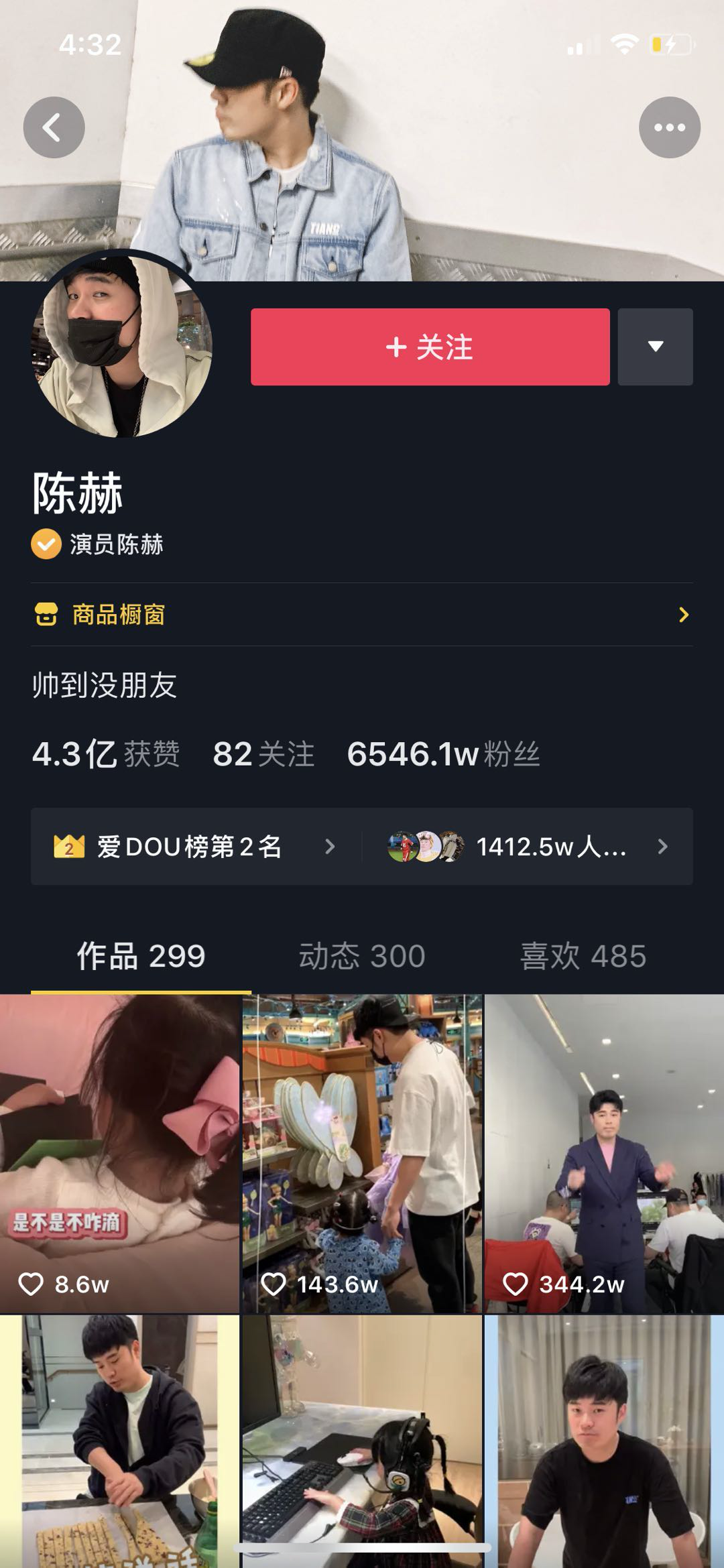 陈赫在抖音拥有 6500 万粉丝,是抖音平台个人账号粉丝量 top1 的明星