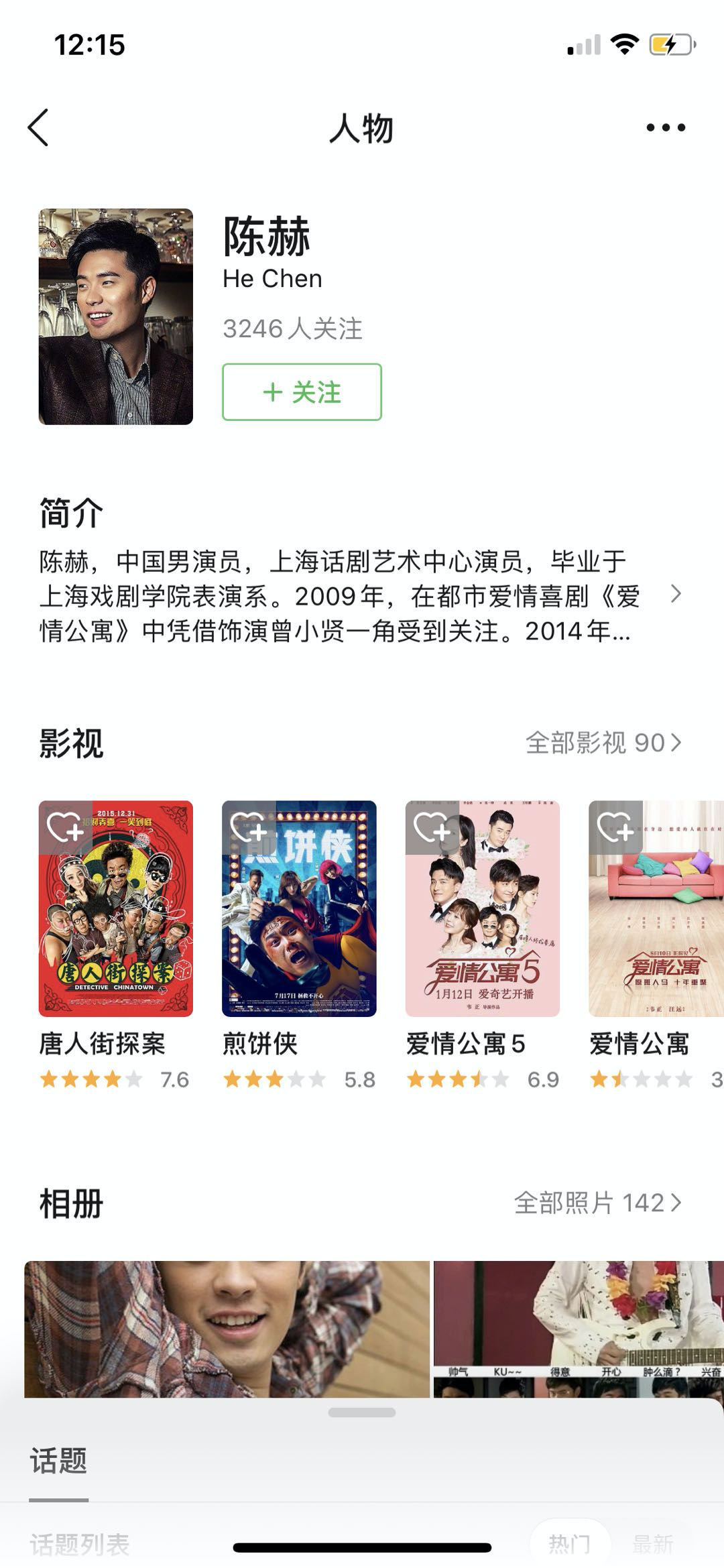我在豆瓣搜索陈赫,精准得到了数据结果,陈赫,3246人关注,拥有全部影视作品90部。