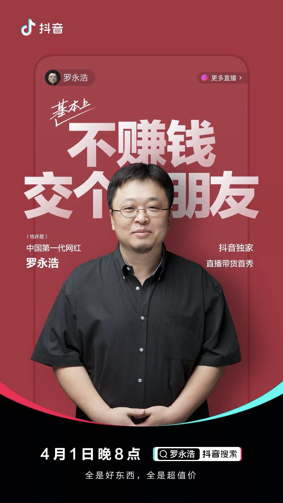 而十分神秘的是,在4月1日晚8点,抖音直播在半路却杀出了一个罗永浩。