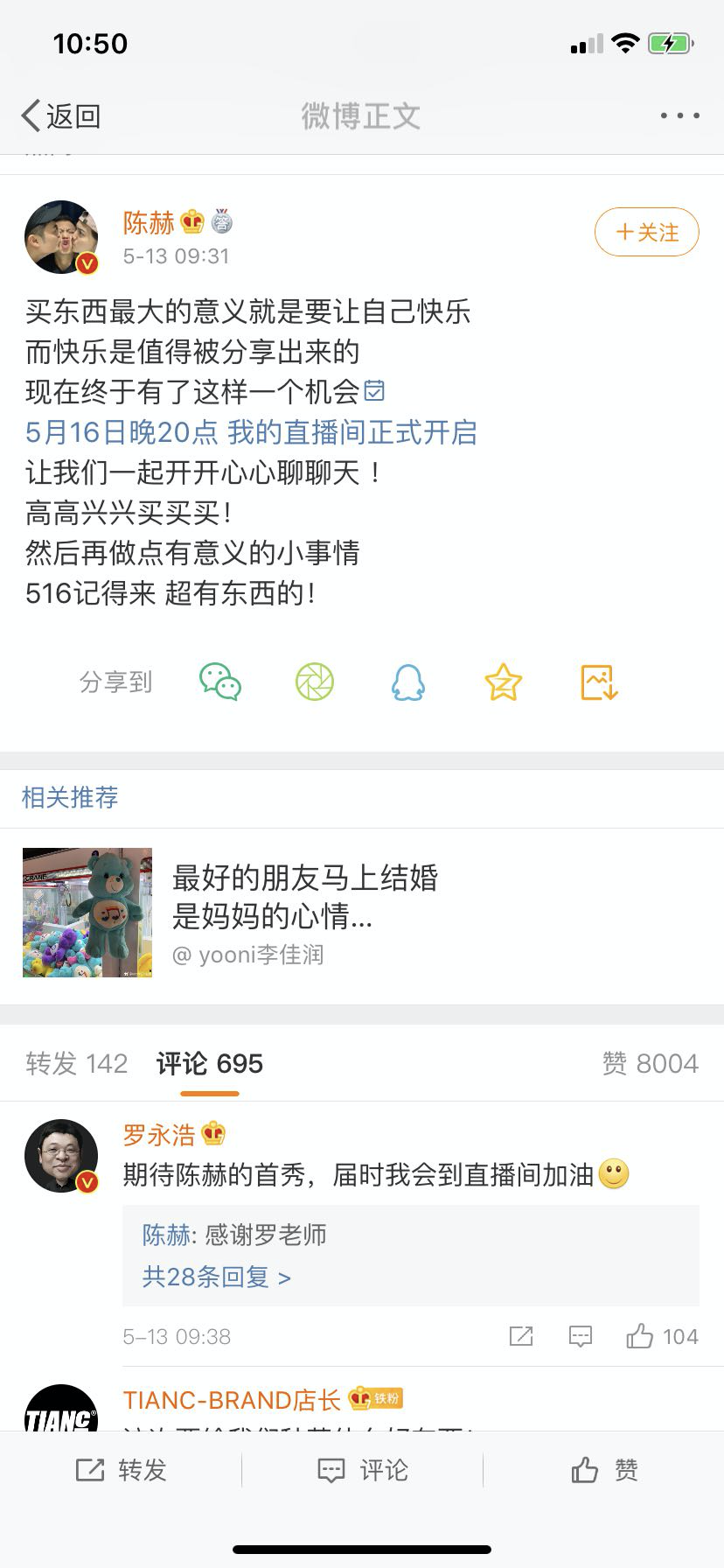 但当你想断言陈赫即将在抖音宇宙里扎根驻营时,陈赫的那一则直播预告,似乎告诉你,陈赫已经准备冲向第1001个全新宇宙了——直播带货。