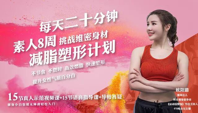 她将用15节真人示范的视频课+15节语音指导课,并附赠健身营养食谱,以及专门的答疑课程,带领零基础的你一点点进阶健身减脂,用8周时间实现肉眼可见的改变!