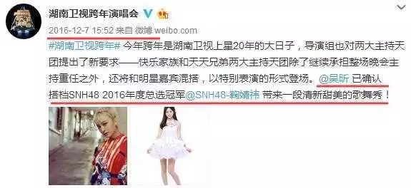 事实上,早在12月7日,导演组就敲定了吴昕的节目并在官方微博上公布了这一消息。