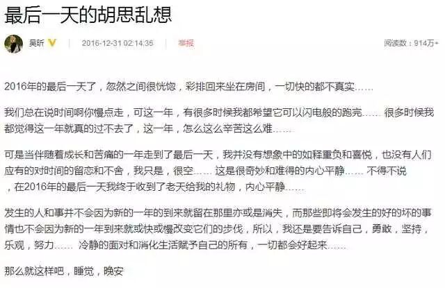 跨年当晚,吴昕也发表了长文吐露自己的心声,多年来的心酸溢于言表。