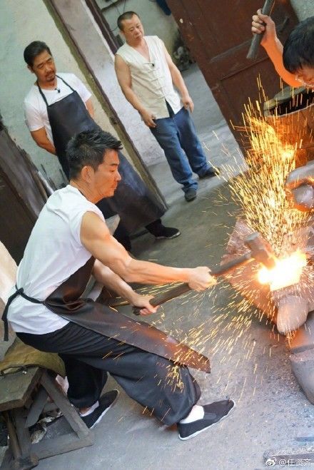 任贤齐和张国立此行专程拜访了龙泉铸剑大师陈阿金,并冒雨拍摄纪录片。