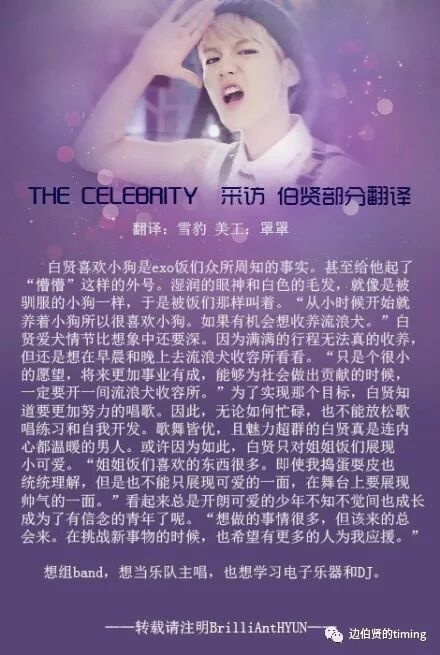 边伯贤的timing(第一篇) 边伯贤的timing 日韩男星 2018-10-09 09:40:56 816 创作不易,用心坚持,欢迎请BaGua喝几杯爱心咖啡!打赏并支持本文 打赏并删除本文 带路边受伤的小猫去医院 养过两只猫叫丑八怪和好漂亮 说过想养小豚鼠 设计公益的狗狗衣服说过想开一间流浪犬收容所 为小时候养的腊肠犬小灯笼在电台里哭过 现在有一只三岁的柯阿基边梦龙喜欢小动物的男孩子都善良PS:来源微博:just一个僵尸粉贝塔星记事关于你的每一件小事(我只是一个想要安利的搬运工,侵权删,不妥删) 创作不易,用心坚持,欢迎请BaGua喝几杯爱心咖啡!打赏并支持本文 打赏并删除本文 感谢您的支持鼓励,我会继续努力的!文章地址:用户邮箱:打赏金额:USDT 请输入数字点击”去打赏“,即可进行打赏支持本文章哦 边伯贤 About the Author 边伯贤的timing 功能介绍:欢迎来到只属于贤女的世界,不定期更新关于伯贤的美图,人生就是timeing,陪啵啵走好每一天。 Related Posts 边伯贤的timing(第一篇) 2018-10-09 09:40:56 发表评论