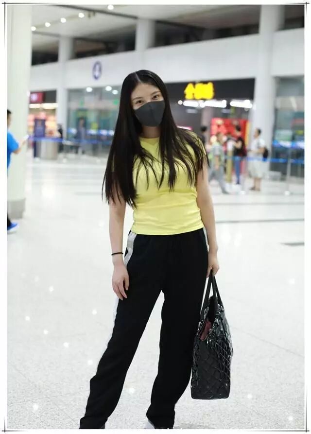 徐冬冬的私服也是挺低调的,她戴着黑色口罩,应该是素颜,她的身材不是很瘦,是那种健康有力的赶脚。她穿着黄色T恤,和黑色休闲裤,简单好看。