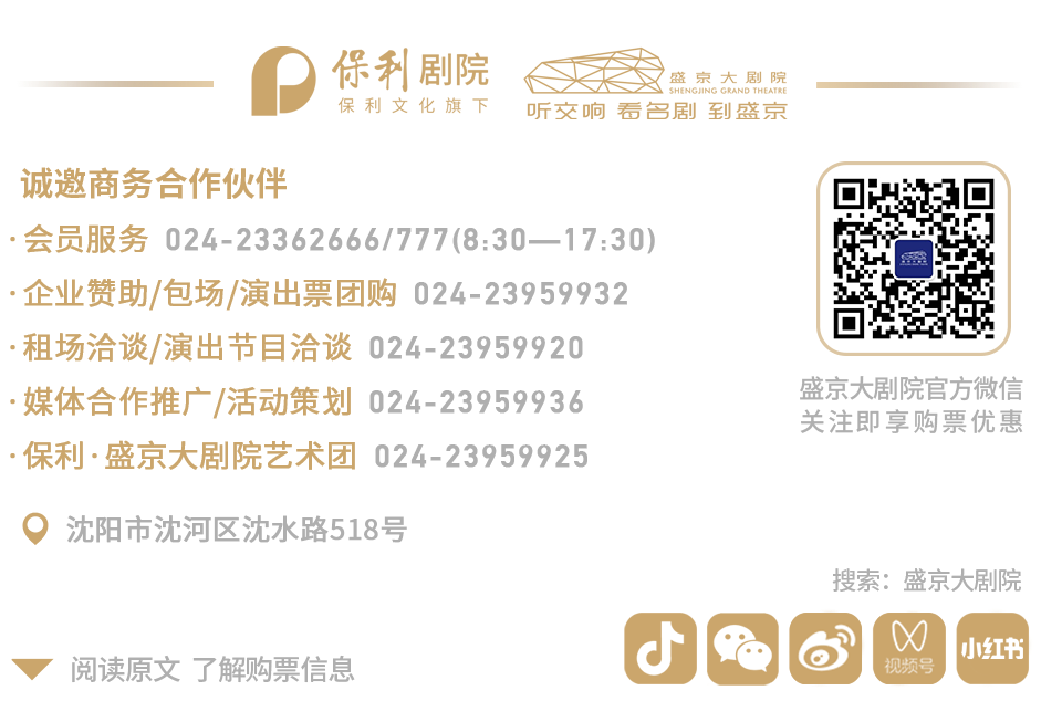 4、由于盛京大剧院停车位有限,且周边道路狭窄,极易在入场高峰造成拥堵。为避免迟到,请您尽量搭车公共交通工具前往,如需自驾,请预留充足的时间,以免影响您准时入场观演!