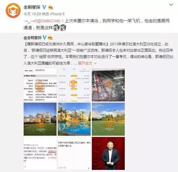 后来有八卦媒体爆料,郭德纲其实拿的是永居签证,但也有人在微博爆料中称,有同学和郭德纲一趟飞机费澳洲,看到他走的是公民通道。