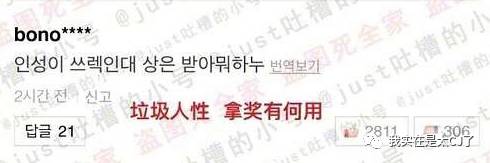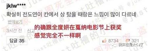 这些镜头传回韩国,韩国网友们是毫不买账的,纷纷表示“和全度妍得奖并不一样”,“最佳女演员?韩国人不这么认为”,“成为演员之前先成为人吧!”