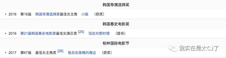 而金敏喜原本在韩国属于前途无量的类型,除了柏林电影节外,韩国国内的青龙奖和百想艺术大赏影后她都拿到过。