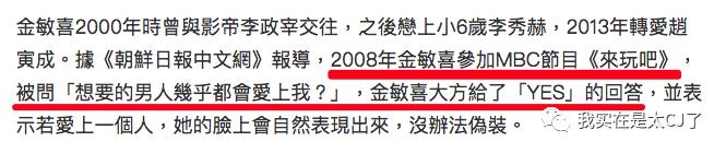 而金敏喜曾经模特出身,曾经是韩国有名的男神斩,交往过李政宰、李秀赫和赵寅成。