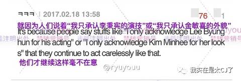 但,这次金敏喜事件我看到有些网友也表示了对李秉宪翻盘的耿耿于怀,认为还是应该肃清演员队伍。