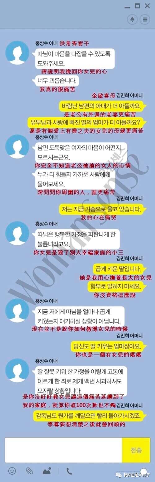 从和洪尚秀的婚外恋爆发后,金敏喜的家人对洪尚秀发妻的敷衍程度,