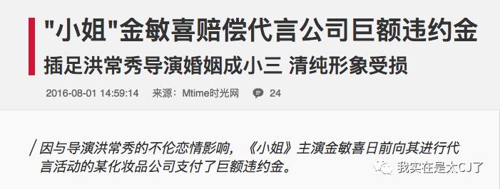 丑闻爆发后,金敏喜的经纪公司规劝无效,直接放弃了她。她自己则需要向代言厂商支付天价违约费。