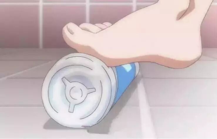 地板上放一只空瓶子,光脚踩在上面滚动。