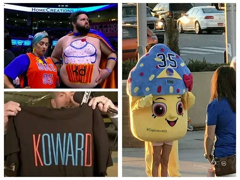 从去年7月4日杜兰特宣布加盟勇士,今天这场比赛的热炒程度就已经被决定了。这是近几年来,有关球员转会的被炒作最凶猛的事件:有对比鲜明的主角,有冲突激烈的戏剧矛盾,甚至有象征性的标志物——cupcake。这是一种薄纸杯装的蛋糕,在美国英语中,也暗指软弱的男人。