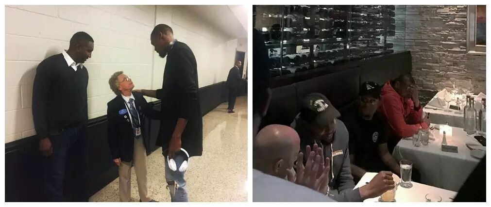 过去那些熟悉的地方,他只能作为客人前往。下图里面那个餐馆,杜兰特一直非常喜欢,来之前就让人订了赛后夜宵,请勇士队全体前往。但是餐饮老板拒绝预约订座,他的理由是,杜兰特来可以,给全体订座就是立场问题。