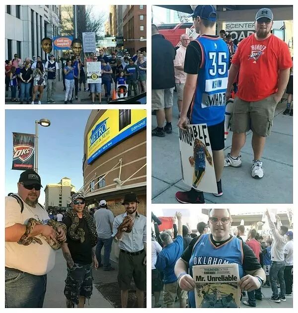所以,俄克拉荷马城的人民有备而来,围绕蛋糕的各种创意充斥着球馆内外。如此高潮的氛围,简直就像一个节日。