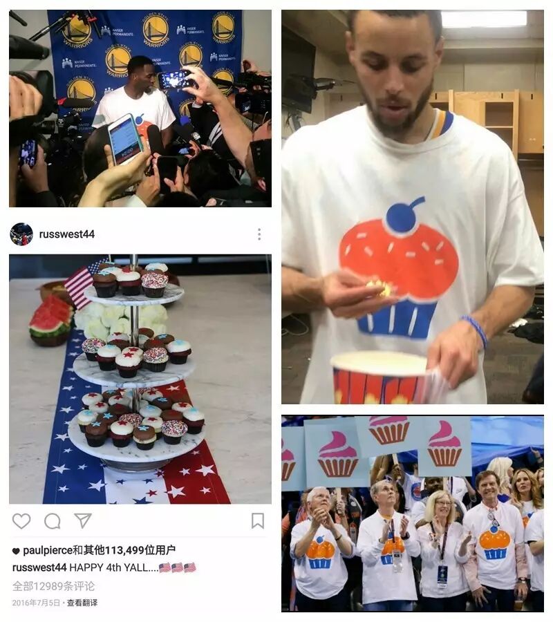 这个标志物的创意,正来自威少。就在7月4日那天,借着美国国庆日,他在IG上发了一张满是纸杯蛋糕的照片(上图左下)。