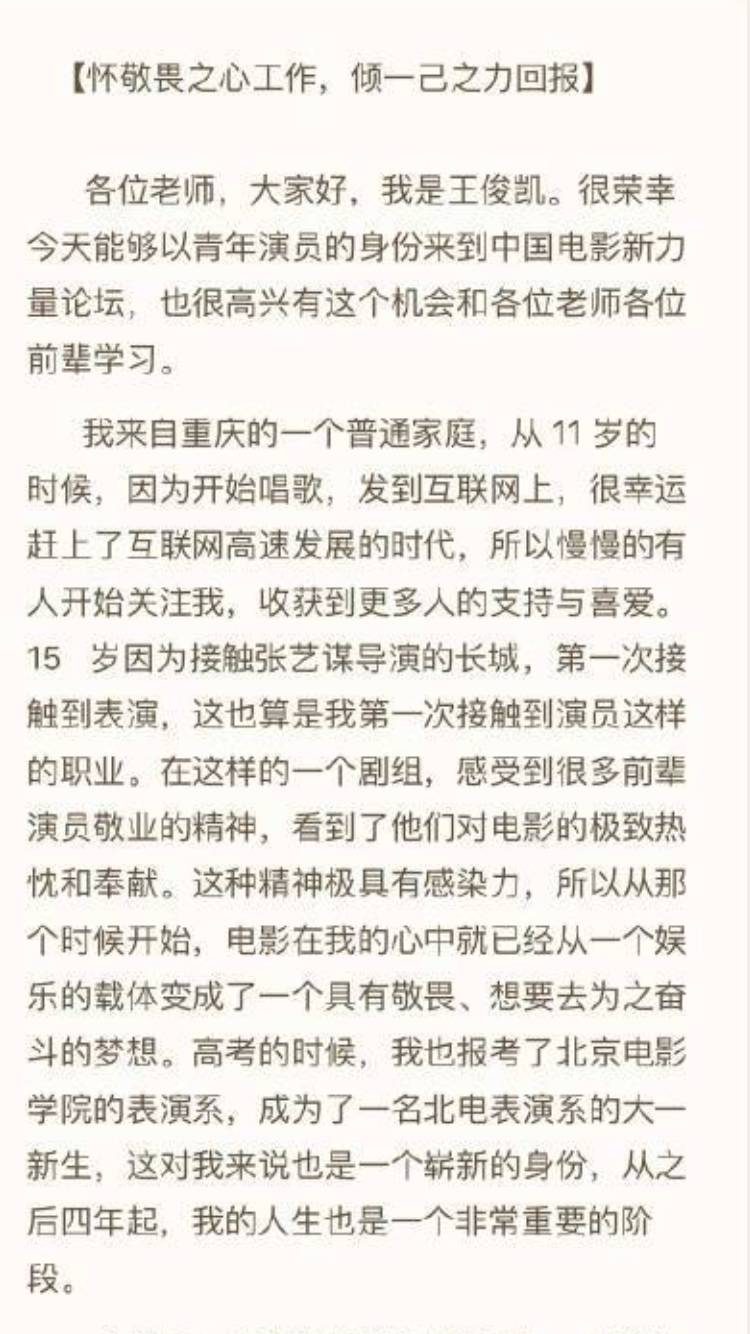 最近,在2017中国电影新力量论坛中,王俊凯“我来自重庆一个普通工人家庭”的发言,让很多人深思和感动。