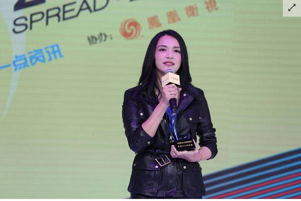 姚晨获得最具个人风范奖。凤凰新媒体联席总裁、一点资讯总裁陈彤为姚晨颁奖。