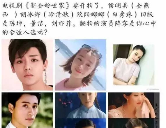 之前网上曝光了《金粉世家》的拟邀演员,侯明昊、胡冰卿、欧阳娜娜