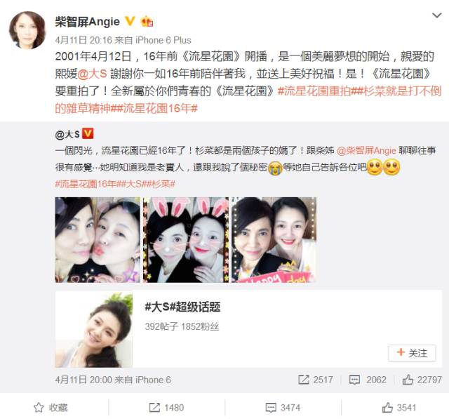 在4月份的时候,柴智屏就在微博上隐隐透露要重新翻拍《流星花园》的意向,作为曾经的女主角大S也在微博上透露称柴智屏有一个大计划。