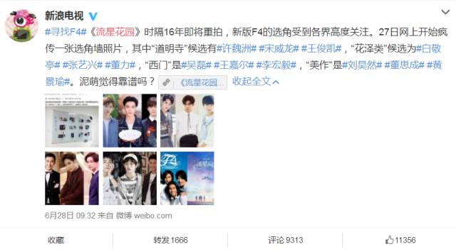 直到前段时间,柴智屏终于公布了“新F4”的最终人选,很遗憾启用的都是90后新人