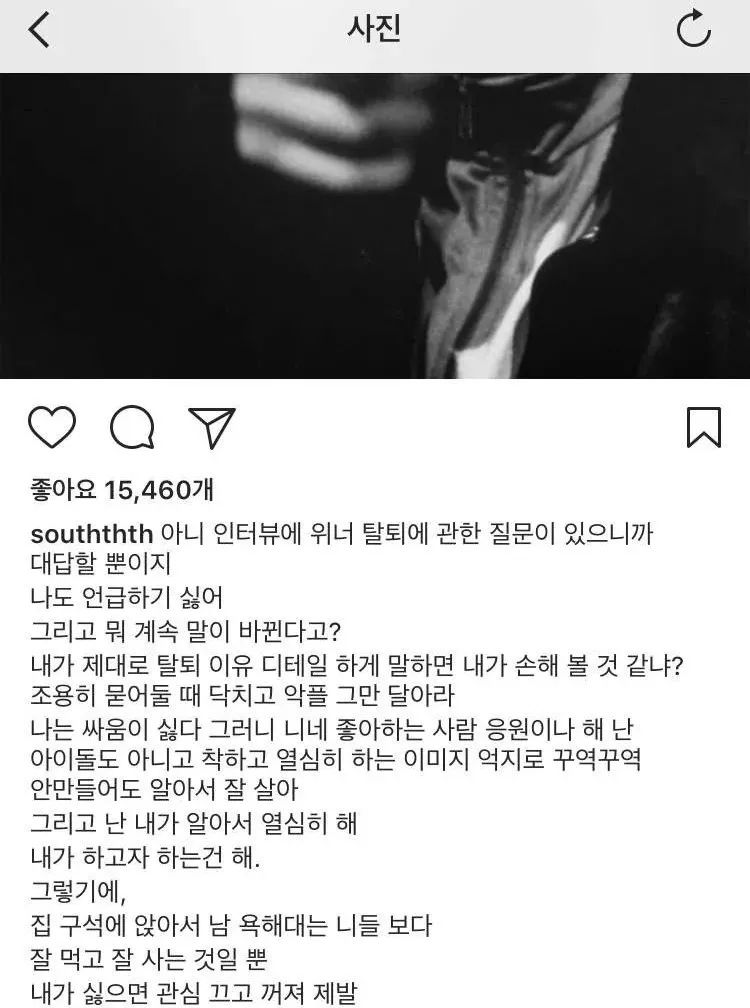 昨天南太铉发了这样一条怼网友的ins,虽然秒删了,然而还是被人截图发了帖子。