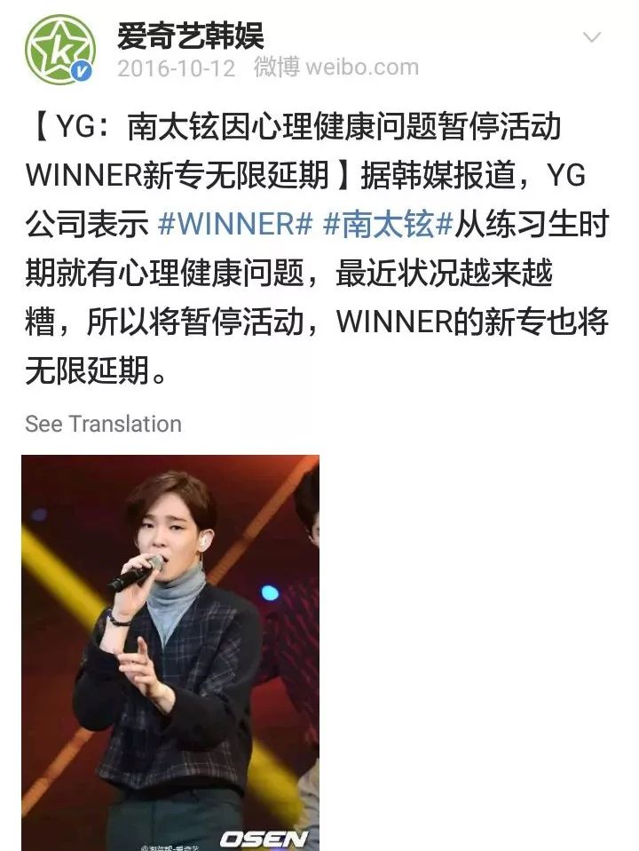 毕竟当时南太铉因为心理健康原因退队,而退队风波给当时的WINNER造成了不小的冲击。