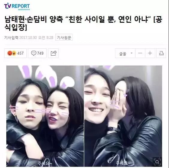 2017年10月,又传出与孙淡妃的恋情。当时南太铉用某app发布了一段他与孙淡妃对口型的互动视频,举止十分亲昵,因此传出了恋爱说。