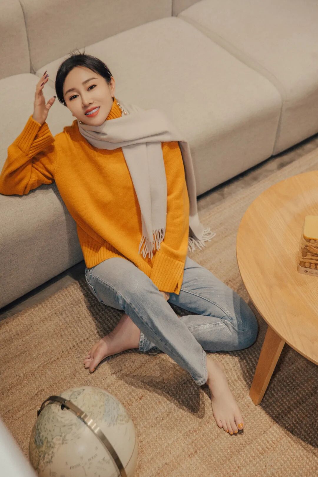 自带的中性风,搭配牛仔单品,戴上米色围巾,就很潇洒随性,把羊绒单品穿出帅气感,也是独一份了。