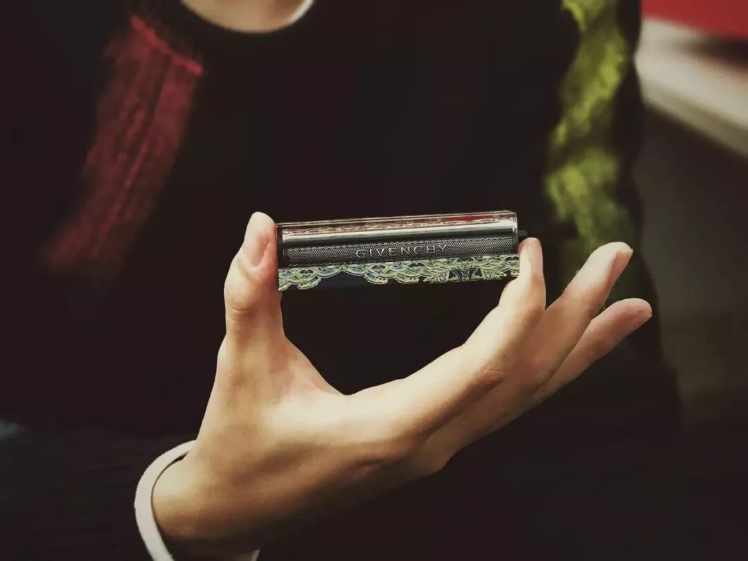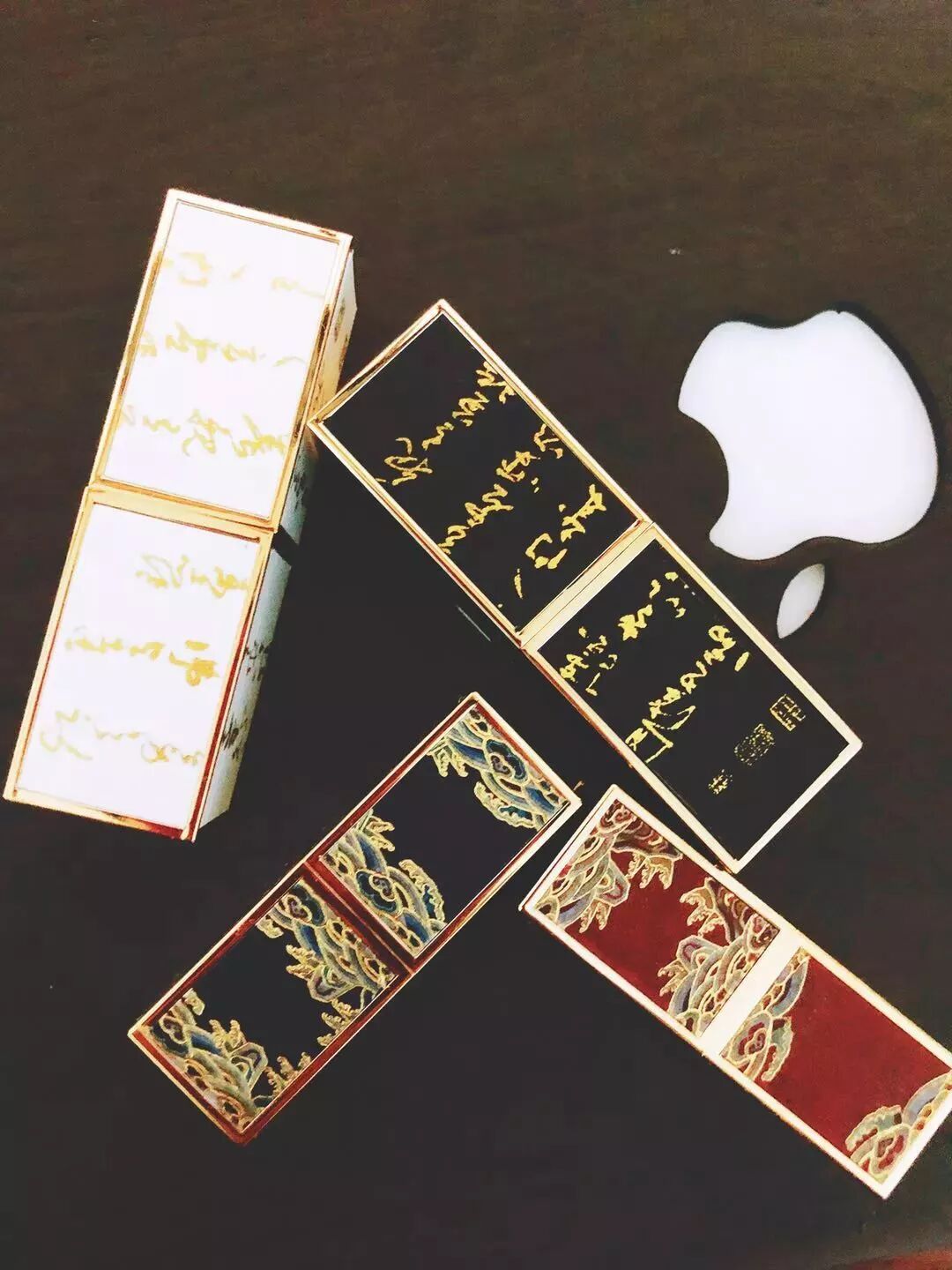 用故宫贴纸贴了纪梵希口红,半面蓝色半面红色,超级高级好看!