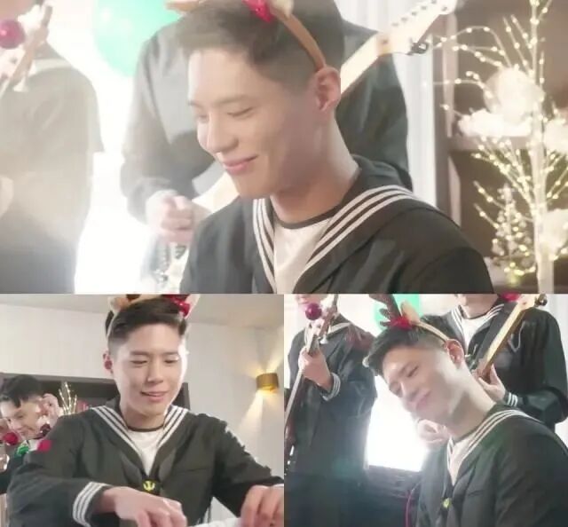 2021年末,朴宝剑与同伴们送上最温暖的圣诞礼物,28岁的他头戴圣诞鹿头箍,一张稚气的童颜自然成为焦点。