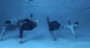 首先影片有大量水下镜头,所以他们每天都要进行潜泳和憋气练习!